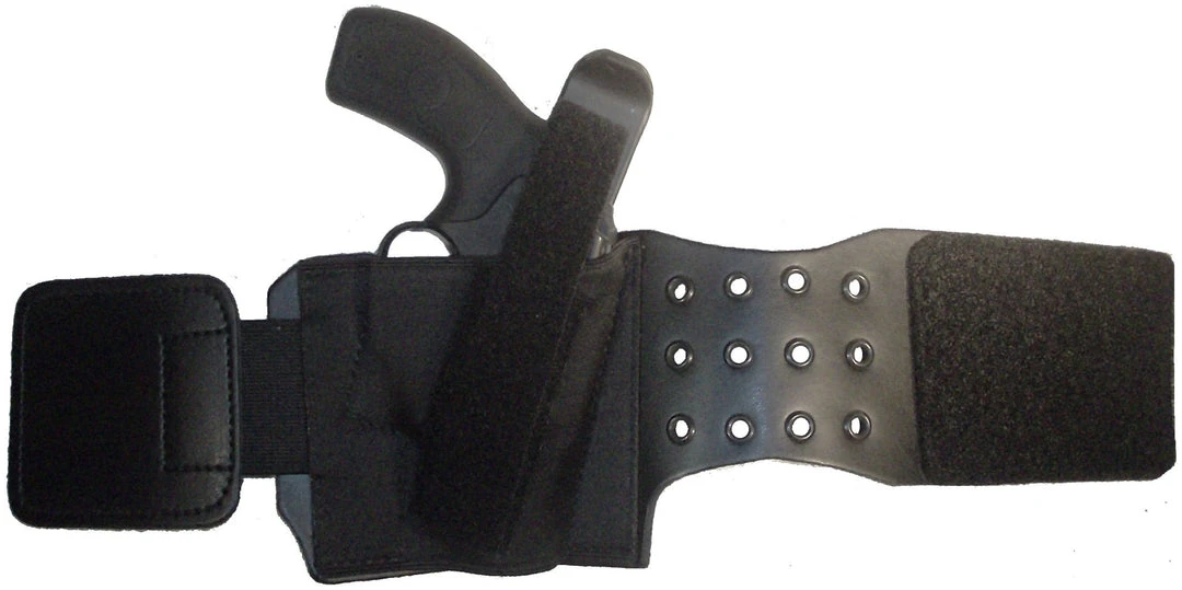 The B416 is designed to be worn over your boot. This ankle holster is secured to the boot by lacing the boot laces through the wrap portion of holster.