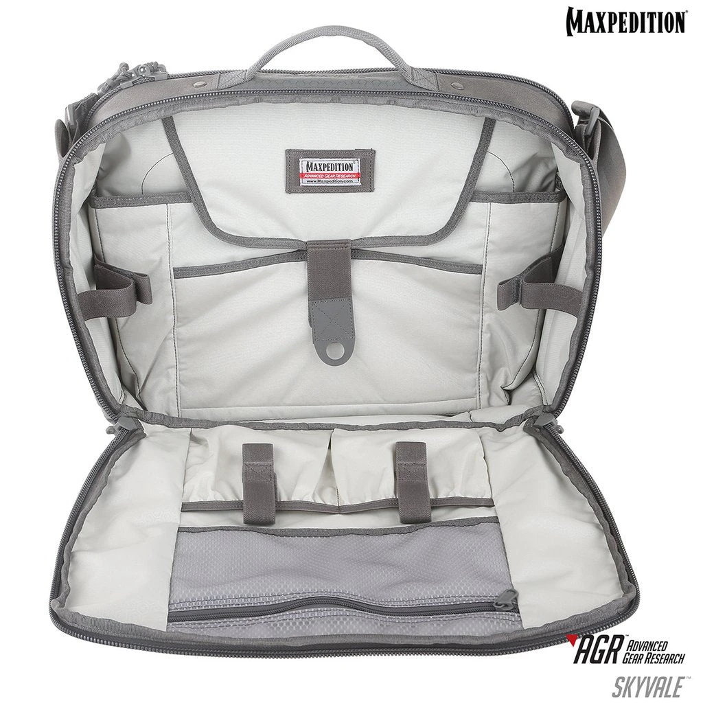 The Skyvale Tech Messenger Bag is a single shoulder strap pack, and has a fully loop-lined rear CCW compartment. The front organizer compartment has a magnetic and zippered closure. The main compartment has numerous pockets, sleeves, and elastic for excellent organization. There is a dedicated 15″ laptop compartment and a padded tablet sleeve. The shoulder strap includes a curved shoulder pad and pivoting strap connections.