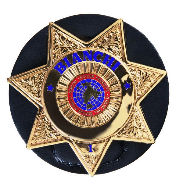 The Model 7350-01 Badge Holder clips on the belt for easy access and high visibility. It is constructed of a sturdy leather look synthetic with a heavy duty metal clip to provide secure attachment. The clip accepts belts up to 1.75 in. wide.