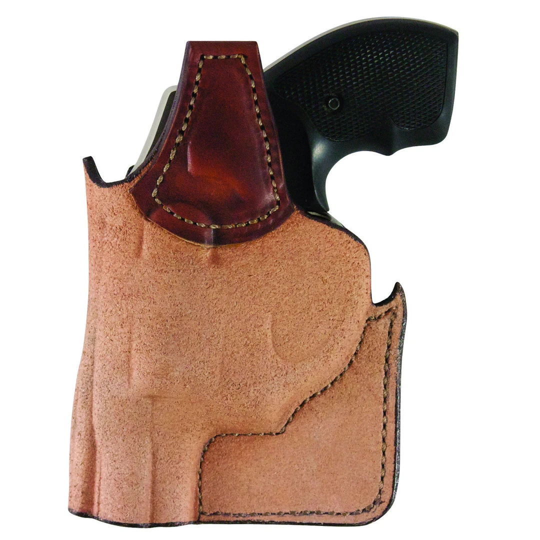 Made of premium, full grain leather, the Model 152 holster is a pocket holster sized exactly for the gun it holds. Dual pocket hooks and a vertical assist pad ensure the holster stays in the pocket during the drawing of the weapon. Available in Plain Tan finish.