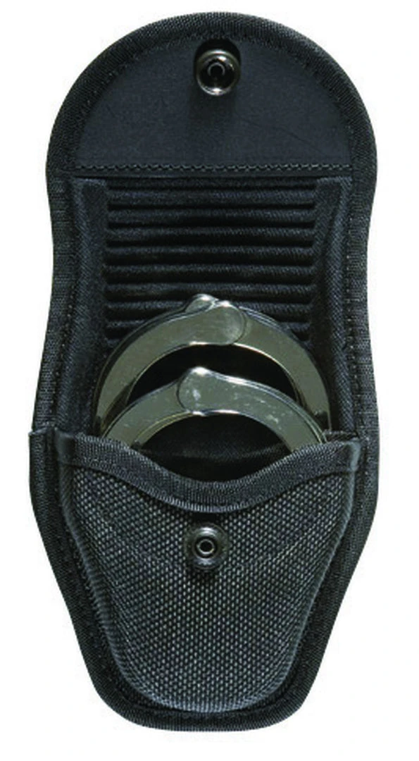 The Model 7317 AccuMold® Double Handcuff holds two pairs of standard handcuffs or similar. Made from molded and contoured trilaminate construction with Coptex™ knit lining. The 7317 is available with hook and loop or hidden snap closure and conveniently fits 2 in. (50 mm) or 2.25 in. (58 mm) duty belts.