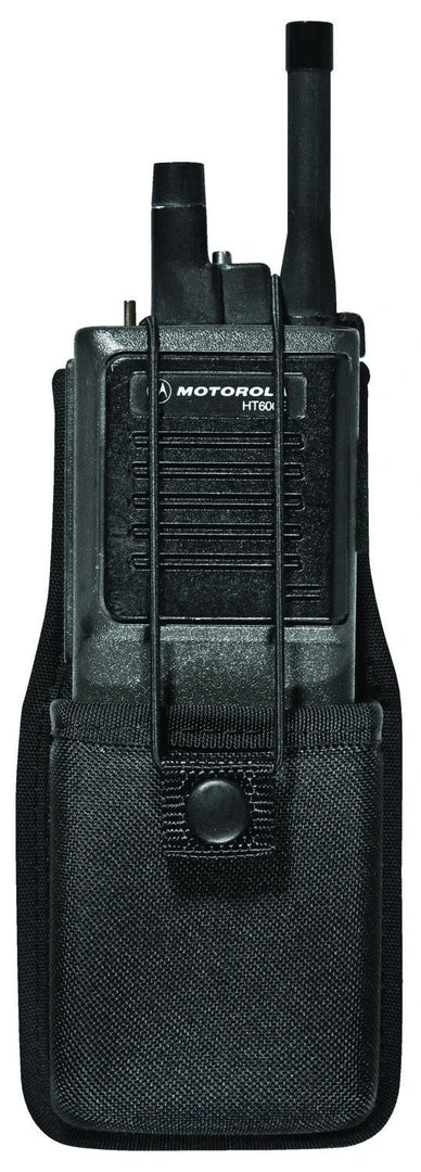 The Model 8014 PatrolTek™ Universal Radio Holder is designed with contour molded technology with trilaminate construction and 600-denier finish. Holds most hand-held radios and features an adjustable elastic security strap with snap closure. A dual web belt loop design conveniently accommodates both 2 in. (50 mm) and 2.25 in. (58 mm) belts widths.