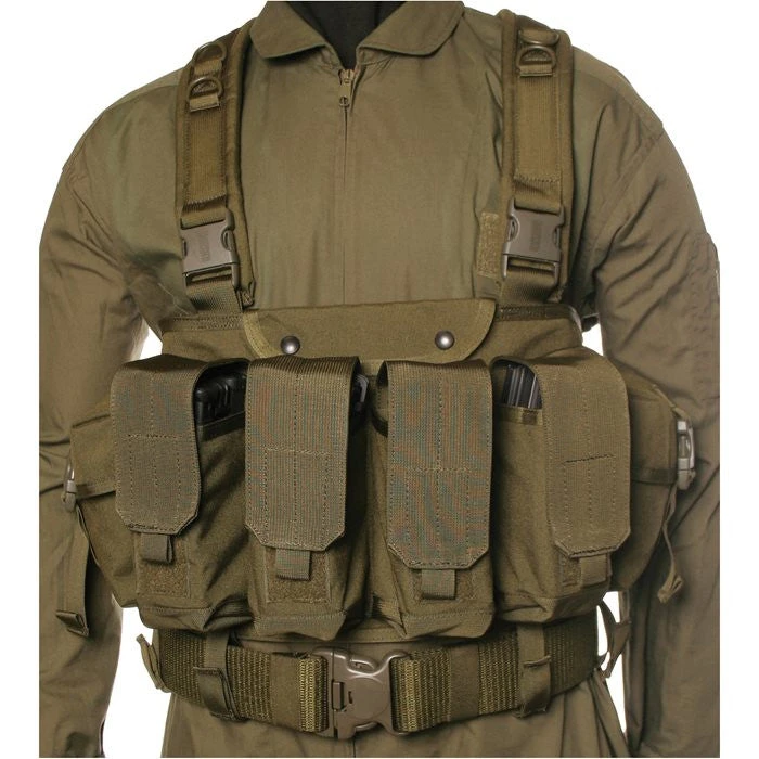 - Four ammo pouches hold two AK-47, three M16 or two M14 magazines each