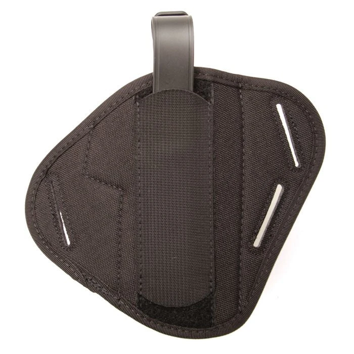This three-slot pancake design gives you the option of strong-side, kidney or crossdraw mounting options while a reversible/adjustable retention strap with molded thumb break provides reliable weapon security.