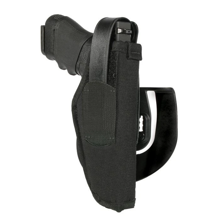 The Nylon Paddle Holster completely encloses the trigger guard while a non-stretch retention strap with molded thumb break keeps your pistol in place until you are ready to draw.