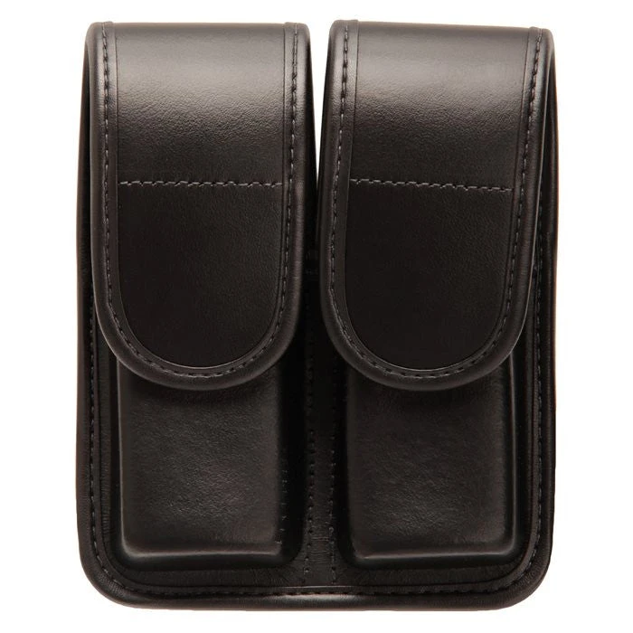 This Molded Double Mag Pouch fits double-stack .45 caliber magazines, such as the Glock 21. It combines the abrasion-resistant, disinfecting properties of nylon with the classic look of plain leather. Its lightweight five-layer laminate system features an integral polymer core for long-lasting service life.
