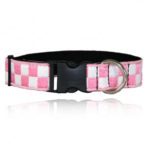 Boston Leather 1 ½ Decorative Embroidered Collar, Pink/White