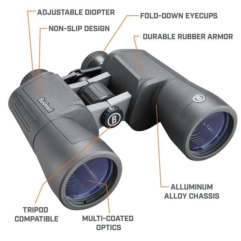 An all-metal chassis is the new PowerView 2’s foundation, and it’s never before been offered at this price. The all-metal chassis ensures ruggedness and durability in the harshest elements, meaning the chassis won’t crack in the extreme cold of winter, or disform in the intense heat of summer. The new metal body also eliminates uneven weight distribution often found in binoculars with plastic chassis. Multi-coated optics paired with a massive 50mm objective lens, brings in a large amount of light, providing vibrant images for a crisp, clear viewing experience. Updated ergonomics and a rich textured rubber armor guarantee you’ll always have a firm grip, even in one hand.