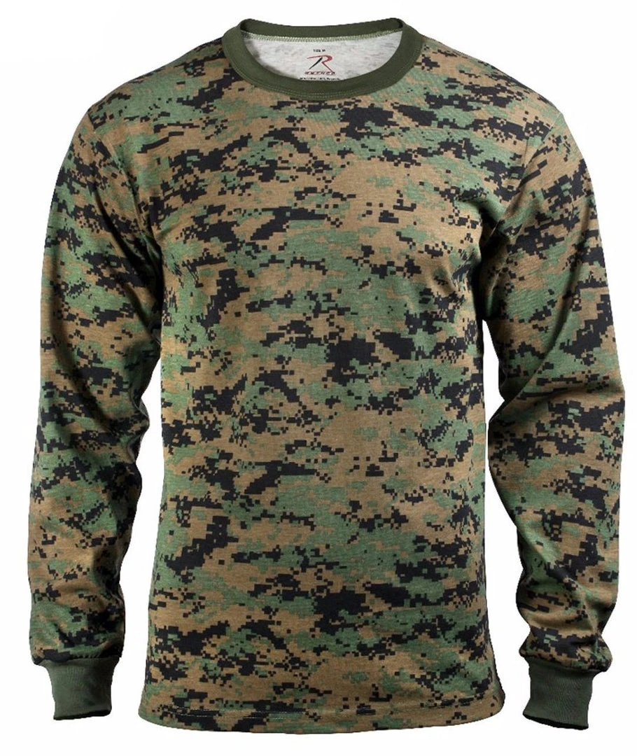 Rothco’s Long Sleeve Digital Camo T-Shirt is made of a comfortable and durable 60% cotton/40% polyester material. This long sleeve camouflage shirt is machine washable, has a tagless label for added comfort and comes in a variety of digital camouflage patterns.