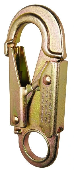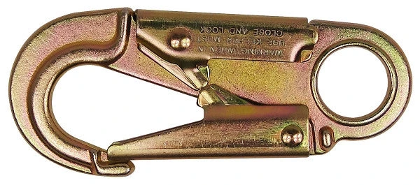 Forged Snap Hook-3/4 ” Gate Opening. This strong, drop forged, double locking snaphook is made of carbon steel. It is ideal for all industrial, climbing gym and ropes course applications. Meets ANSI Z359.1 standards. MBS: 23 KN