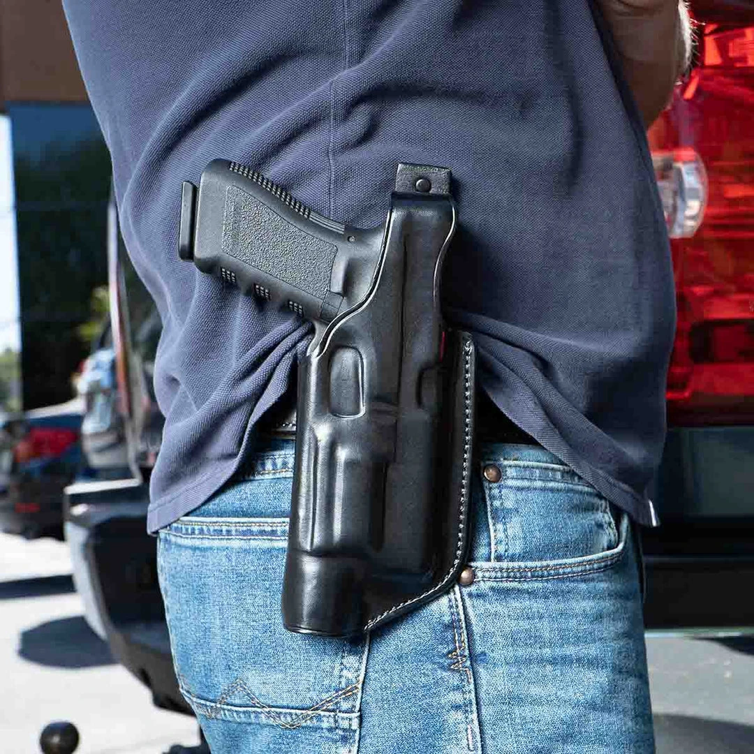 The Halo is constructed of premium steerhide, fits belts up to 1 3/4” wide, and is made for semiautomatic pistols and is available in right hand designs, in black.