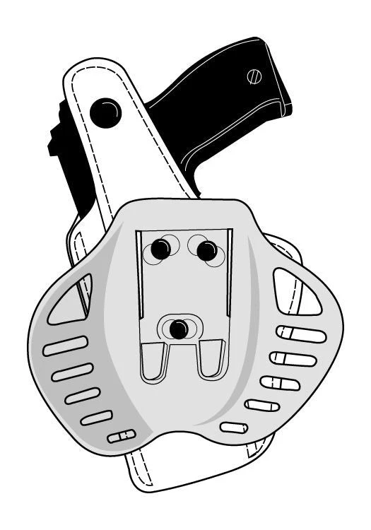 Contoured paddle with flexible wings helps keep the holster securely in place as you draw.