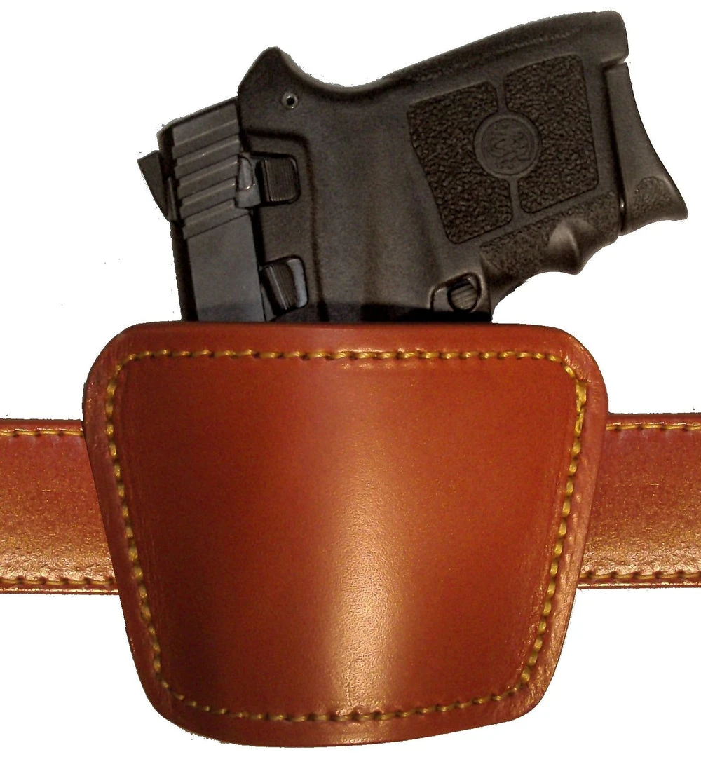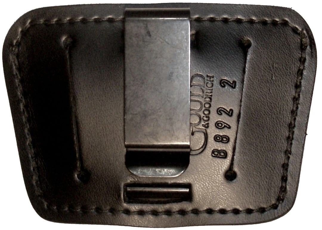 Spring steel clip is removable. Genuine leather. Suede lining helps protect gun finish.