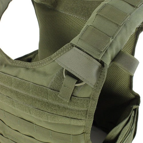 The vest is sized for both BALCS/SPEAR cut soft armor and SAPI plates for front and back protection. The Condor Enforce also has all the standard plate carrier features from Condor including an emergency drag handle, removable anti-slip padded shoulder pads with hook and loop guides, heavyweight webbing for modular attachments, and easy access to plate pockets. You can adjust the vest to fit your height and girth.
