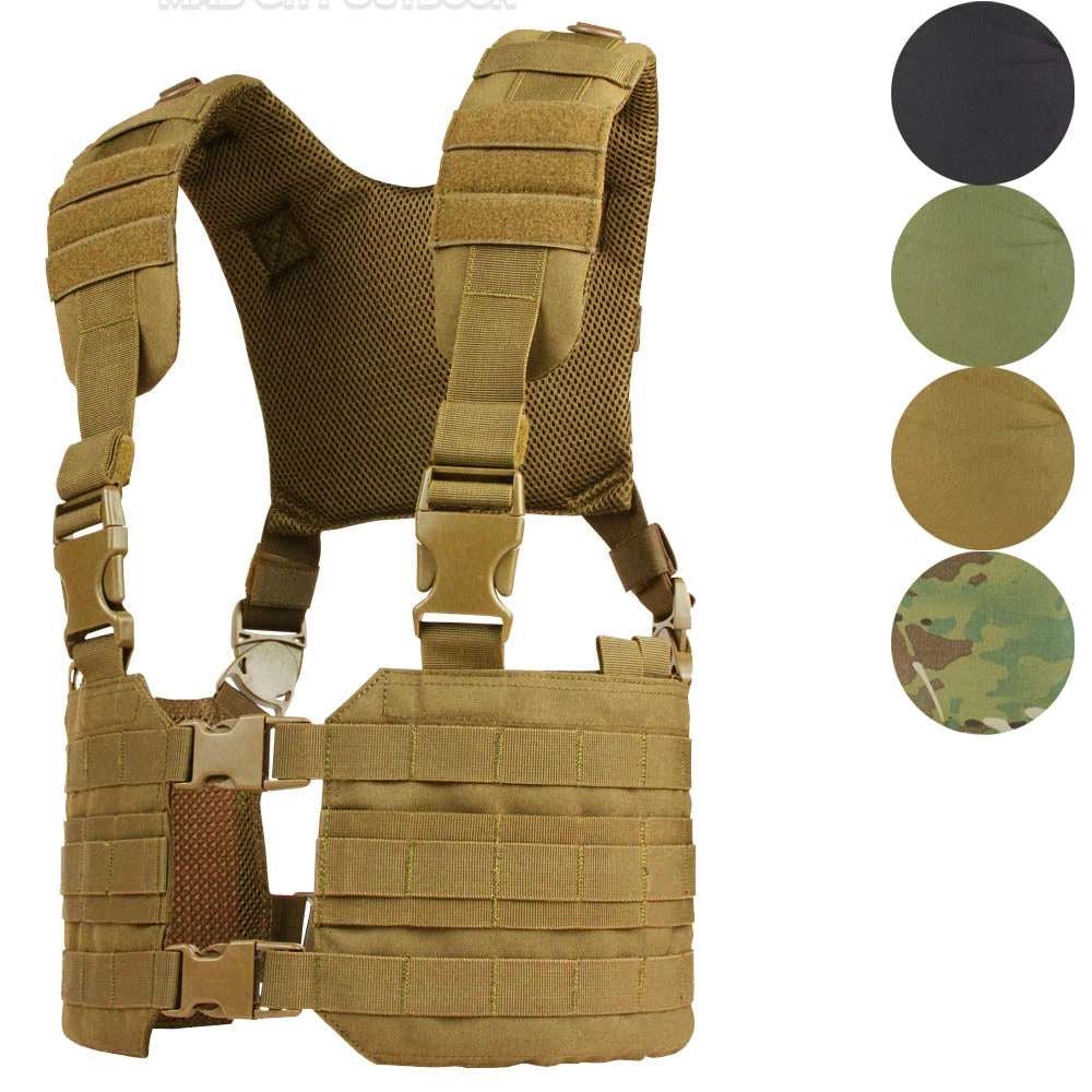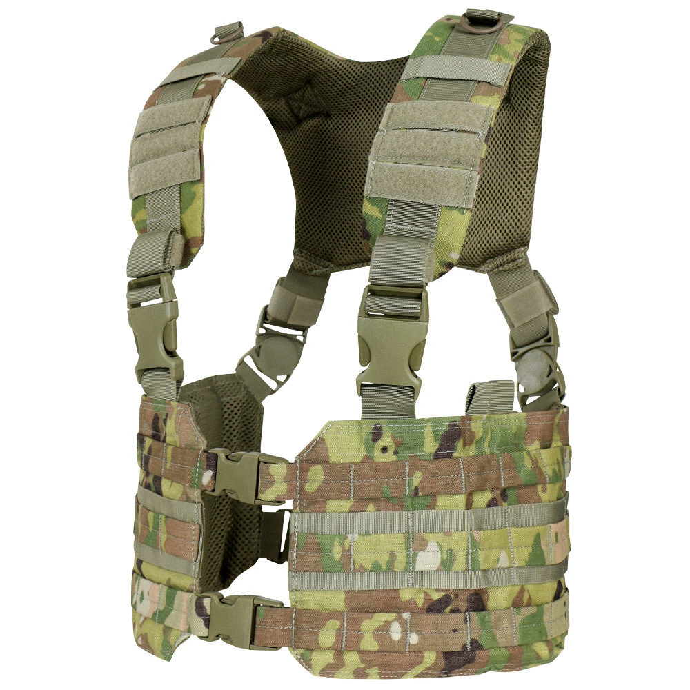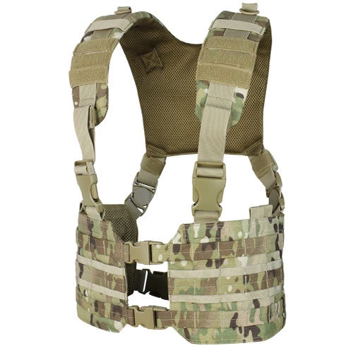 The Condor Ronin Chest Rig is designed with a quick-release buckle front opening and H-harness backing for easy access. The MCR7 features a padded h-harness with multiple mounting/hanging points for accessories such as hydration carriers, radio pouches, carabiners, or any other tools you may have.