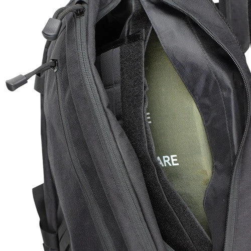 - Main compartment with removable MOLLE panel and soft armor insert pocket (19″H x 14″W x 4.5″D)