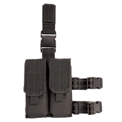 The Voodoo Tactical Drop Leg Platform has two pouches to hold your 4 x 30 round M4/M16 mags. The cover is removable and adjustable allowing you to remove the cover for open two mag carry or adjust to fit your mag size with the hook-n-loop system. Hook-n-loop rear pocket for small caliber pistol or ammo. Thigh straps with two rows of non-slip rubber backing and quick-release buckles.