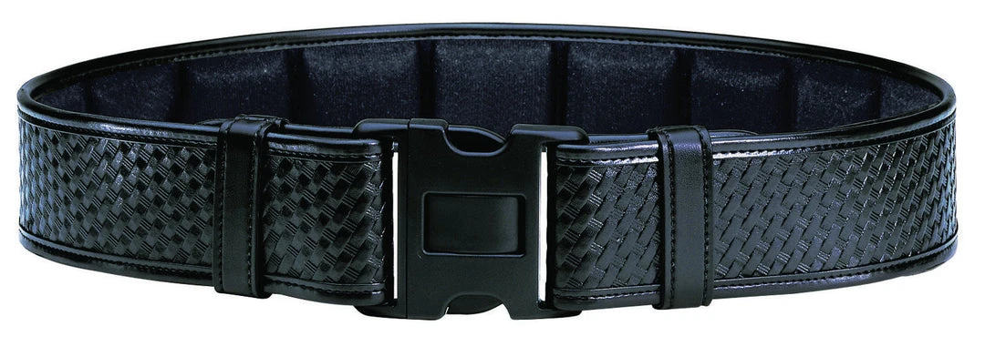 The Model 7955 ErgoTek™ Duty Belt features a 4-part laminate construction for firmness and holster support. Ergonomic load support cushions on the inside of the belt helps to distribute weight evenly over the entire waist for comfort during all-day wear. It features a Duraskin™ exterior with loop lining for use with the Bianchi® 7205 Liner Belt. 2.25 in. (58 mm) belt width. It features the Tri-Release™ shatter-resistant polymer buckle.