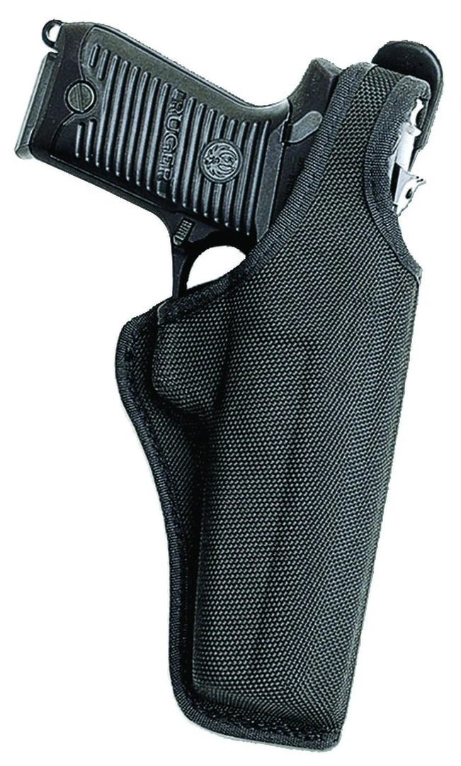 This hi-ride duty holster with thumb snap closure is made with 50% greater density foam than standard civilian AccuMold holsters, for increased firmness and strength. A top draw design, it positions the pistol close to the body. This traditional design is ideal for those who are not in a high risk patrol environment and provides the most comfort for those who work seated in a vehicle or at a desk. The belt slides through the injection molded adjustable Quick-Slide™ belt loop for 2.25 in. (58 mm) belts.
