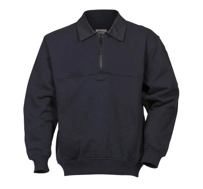 The Shield Job Shirt features a heavyweight cotton blended fleece and is as functional and durable as it is comfortable! Designed with two options, wearers have the choice between the Self Collar or the Twill Collar, providing a quarter front zipper closure with a chin guard that protects the chin and neck from the zipper. The lined Twill Collar is styled with fabric elbow patches that feature our Tek3 fabric for excellent match, color retention and nano fluid repellency technology. Additional benefits include mic pockets at shoulder seams, tab at center of chest for mic clip and sunglass options, dual fleece-lined side hand warmer pockets with internal storage pockets for cell phone and D-ring feature for carabiner/key security, and roomy chest pocket that accommodates a full-sized radio.