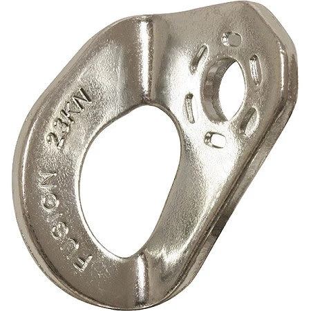 This 3/8″, 304 stainless steel bolt hanger is designed for increased strength (30kN) and durability. Its large, open design and polished edges allows easy and smooth clipping. The design also allows for multiple carabiner capacity and fits up to 10mm steel bolts.