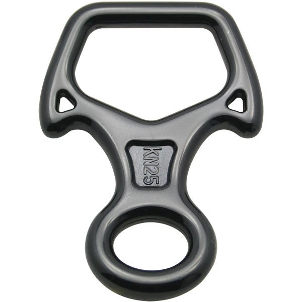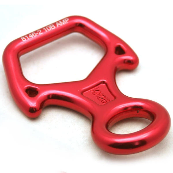 This new aluminum descender is extra thick with ears and belay slots. Â It allows the user control while descending or belaying with a heavy load. Weighs only 3.1oz.