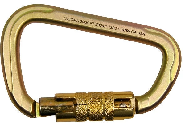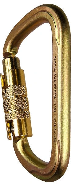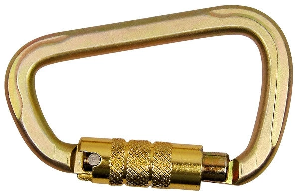 Modified D shaped carabiner. Extremely strong and versatile with a large snag free key nose and a 1″ opening for easy clipping, making it a great choice for a wide variety of industrial and sporting applications. Captive eye pin keeps rope or webbing from slipping. Meets ANSI Z 359.1.