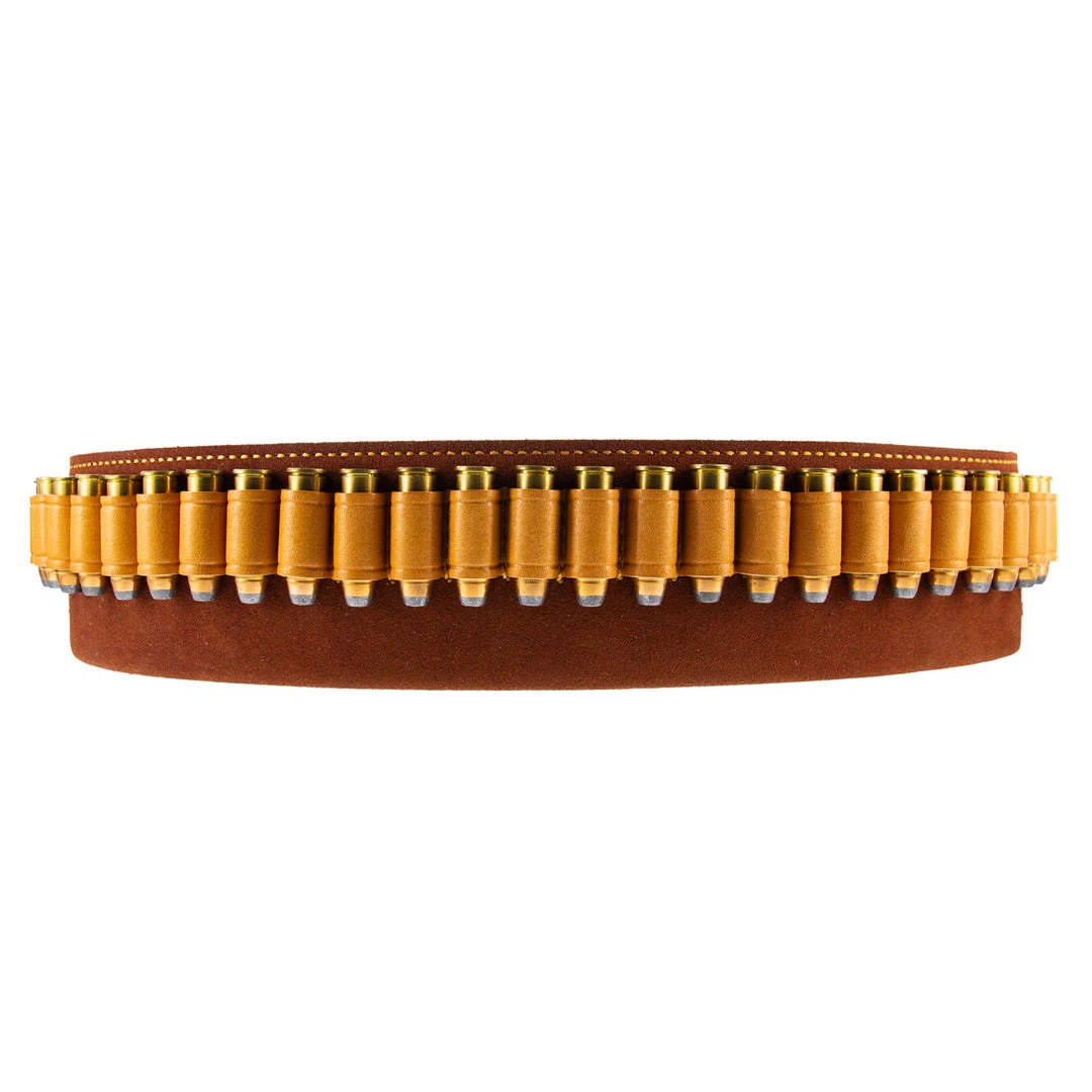 The 3″ wide belt is made of Premium Center Cut Steerhide, with a nickel-plated buckle and .44/.45 caliber cartridge loops centered on the belt for right or left hand used.