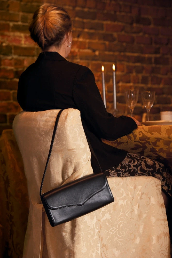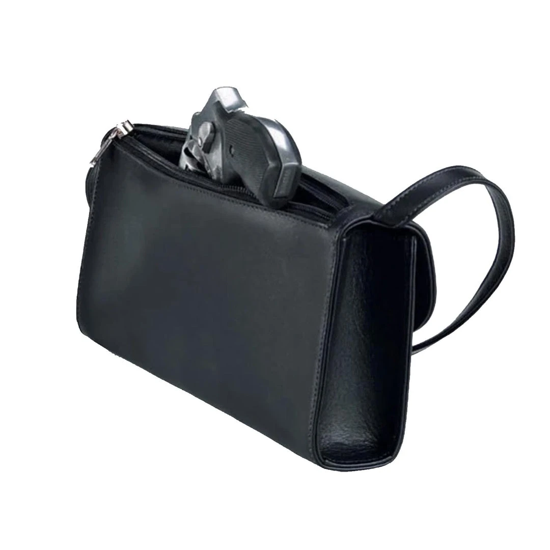 The Bebe works equally with evening attire or jeans and always belies its serious purpose. A compact, clutch-style handbag crafted from full-grain, glove-tanned leather, it features solid brass hardware, magnetic closure and a fully lined interior. The full-length zipper along the upper rear edge of the handbag opens to reveal a lined compartment with an elasticized holster, set at an angle to assure easy access. Like all Galco handbags, it features a locking zipper for added security. Securely concealing your most effective means of personal defense, the Bebe keeps a compact handgun available and quickly accessible.