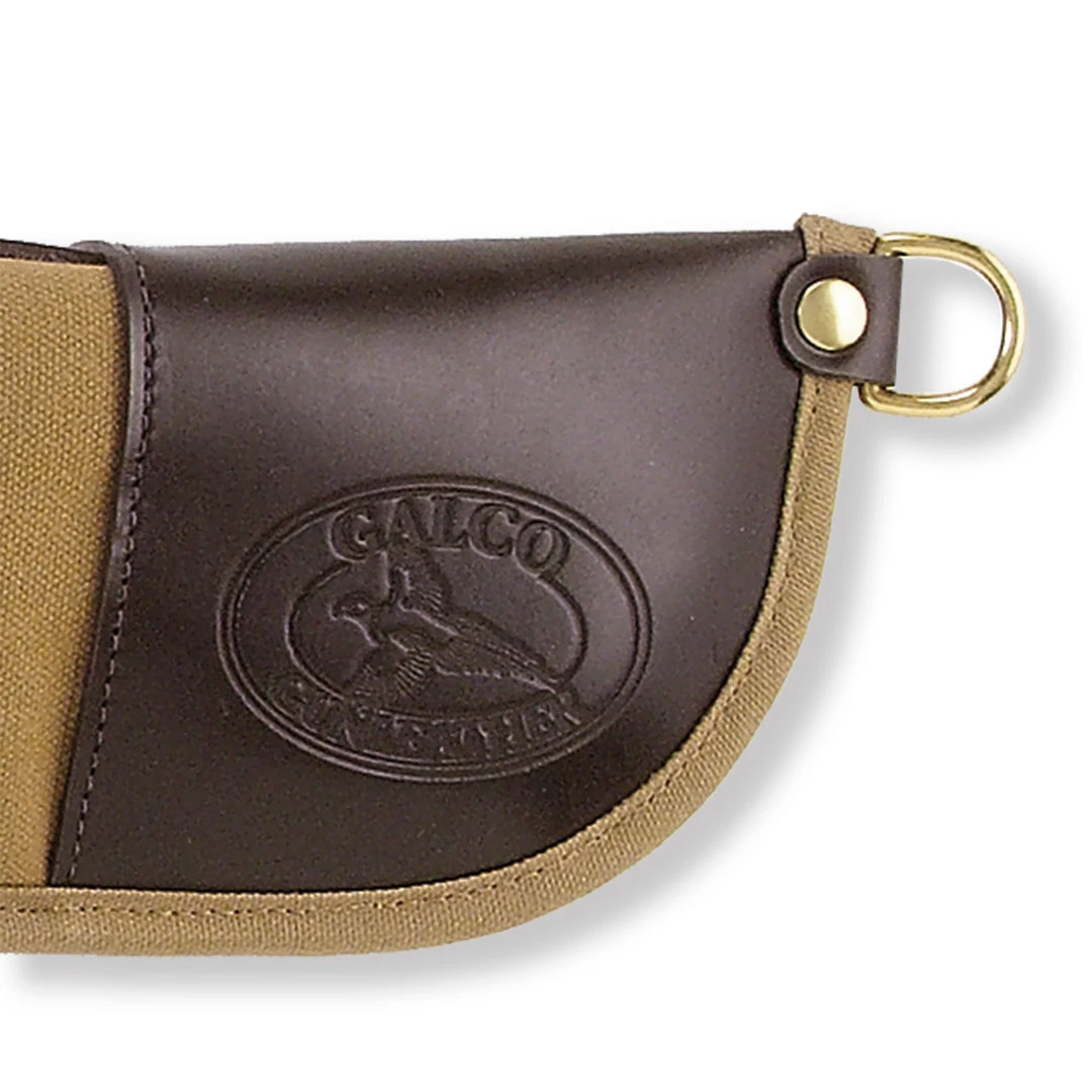 The Field Grade Zippered Scoped Rifle/Shotgun Case is constructed of khaki cotton duck, lined with acrylic fleece and trimmed with rich dark havana leather. All hardware is solid brass. The adjustable carry handle/shoulder strap is constructed of leather. Water resistant and very functional in the field, it also has a spacious exterior pocket for ammunition, eye and ear protection or other essential gear.