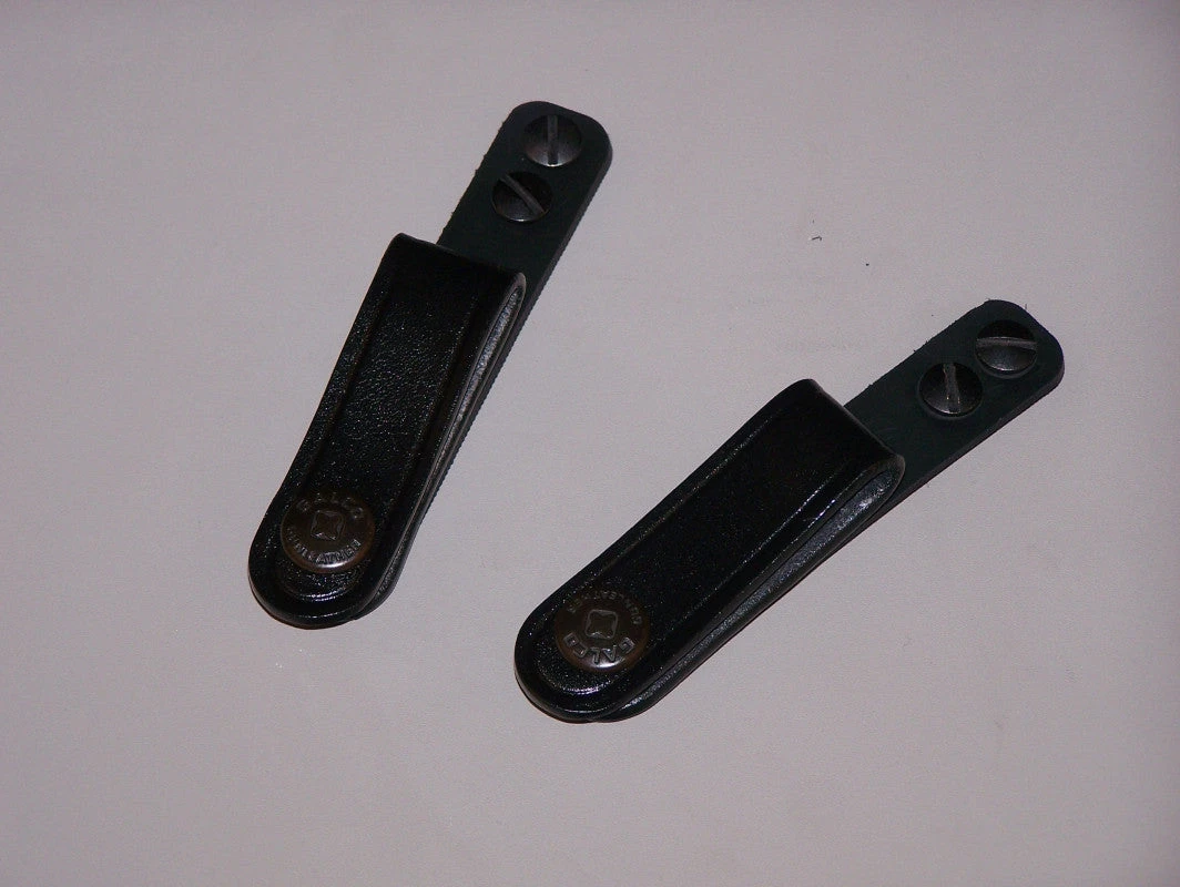 Optional tuckable belt loops for the KingTuk and V-Hawk IWB holsters are constructed of a Santoprene tab mated to a leather belt loop with snap closure. The leather loops will fit belts up to 1 3/4″ wide.