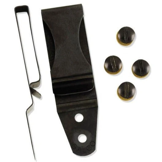 A pair of metal clips compatible with the KingTuk and V-Hawk IWB holsters. Includes four screw/post sets. Fit belts up to 1 3/4″.