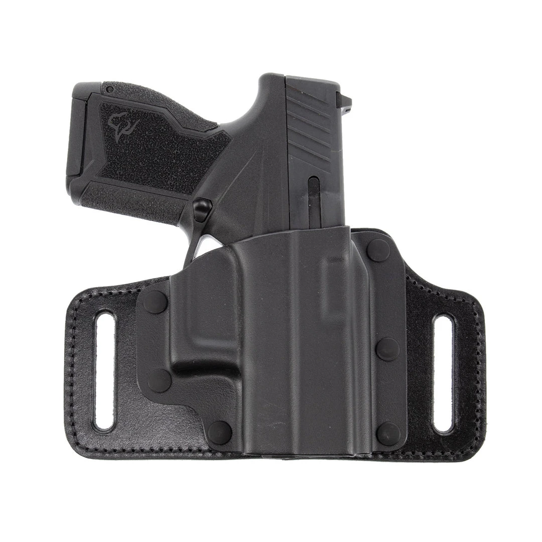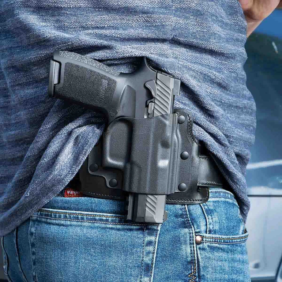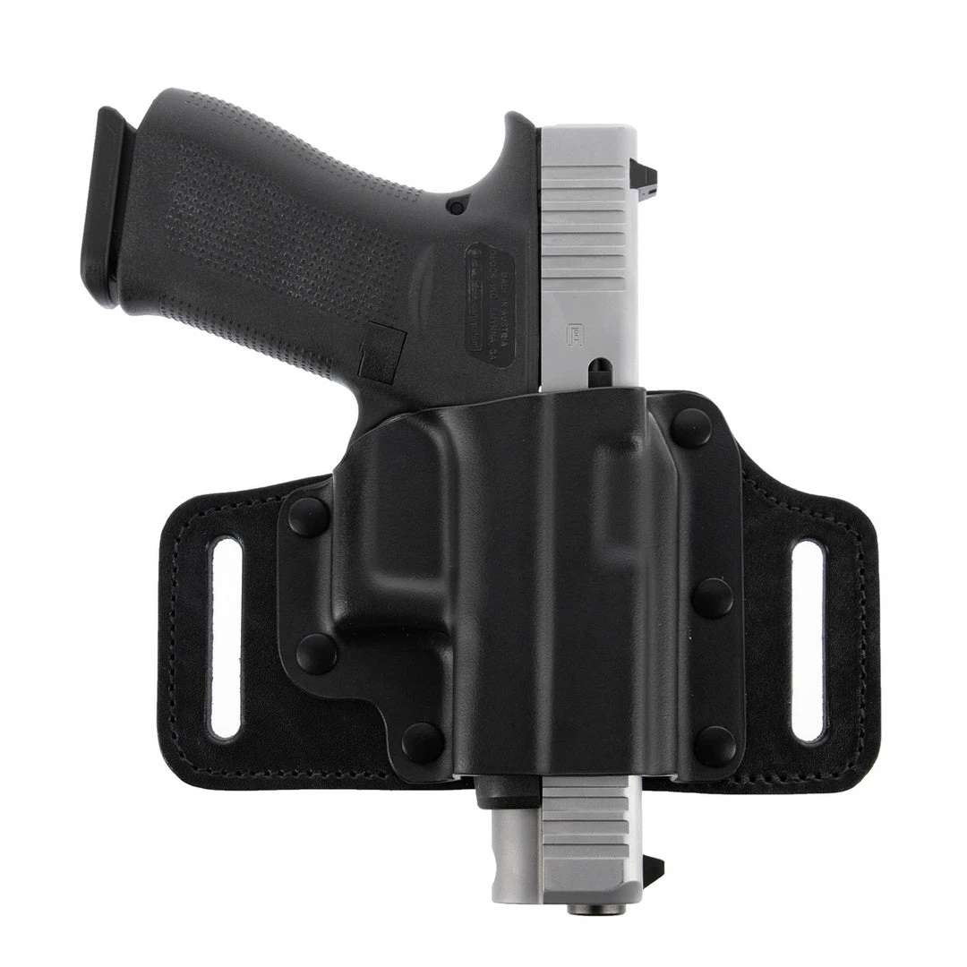 - Fore-and-aft belt slots pull the handgun into the body for concealment