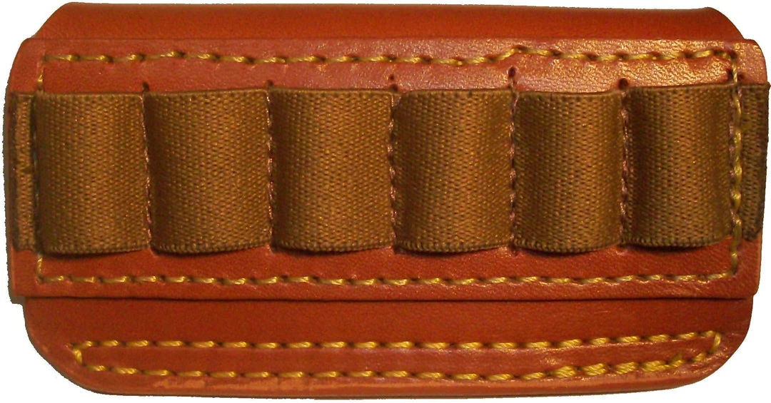 Genuine top grain leather. Elasticized cartridge loops adjust to cartridge size. Fits belts up to 1-3/4 in.