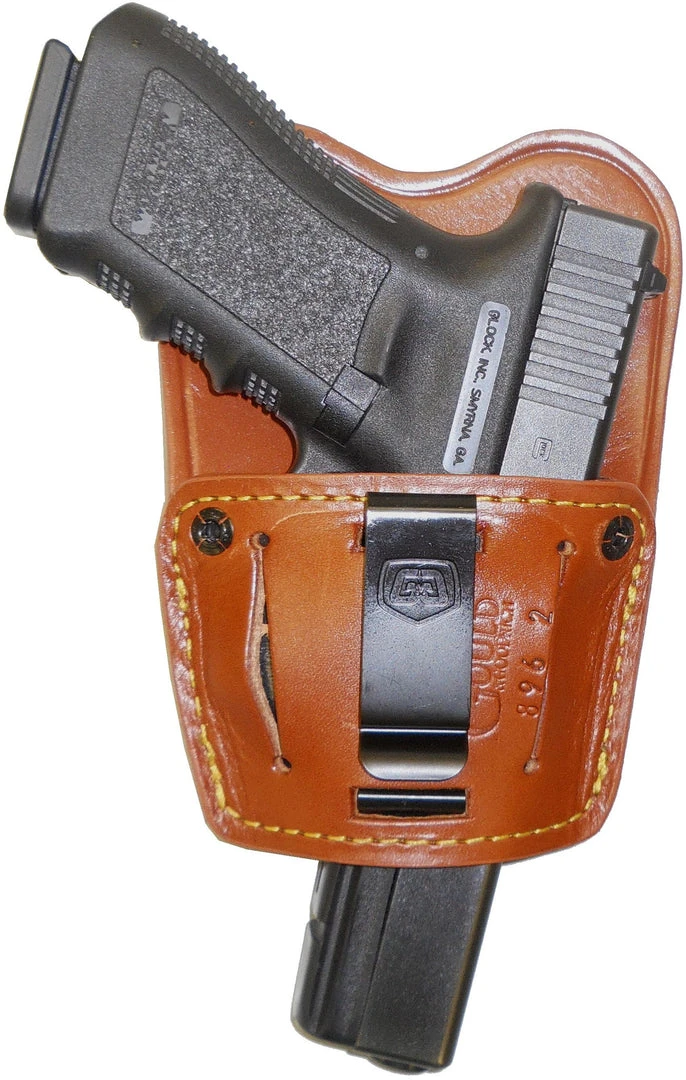 Spring steel clip and leather flap body shield are removable for maximum versatility.