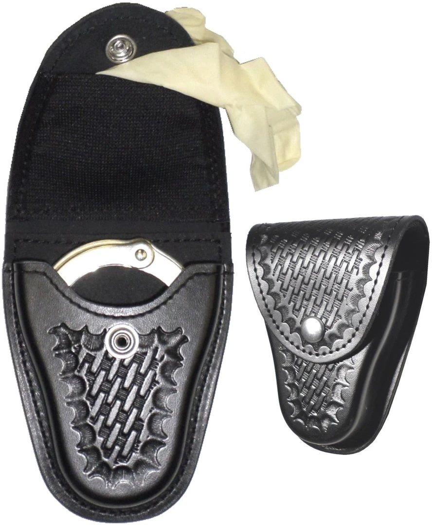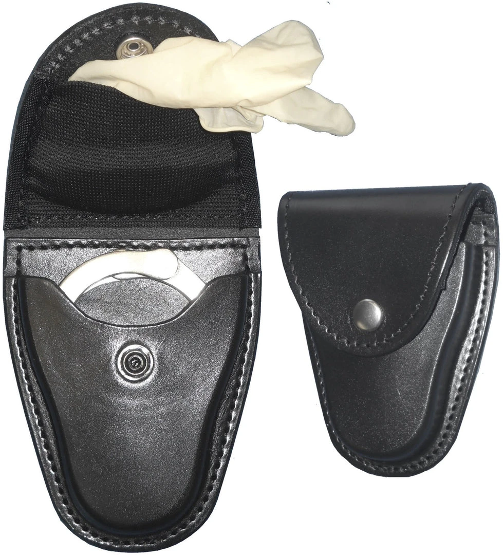 Holds most chain handcuffs. The inner pouch holds one pair of surgical gloves.