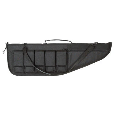 The Voodoo Tactical 36″ Protector Rifle Case is a rugged yet affordable gun bag. The pack cloth fabric has reinforced stitching, fully lined with five exterior mag pouches, exterior zippered accessory pocket, adjustable shoulder strap, wrapped carry handles and a lockable steel “D” ring.
