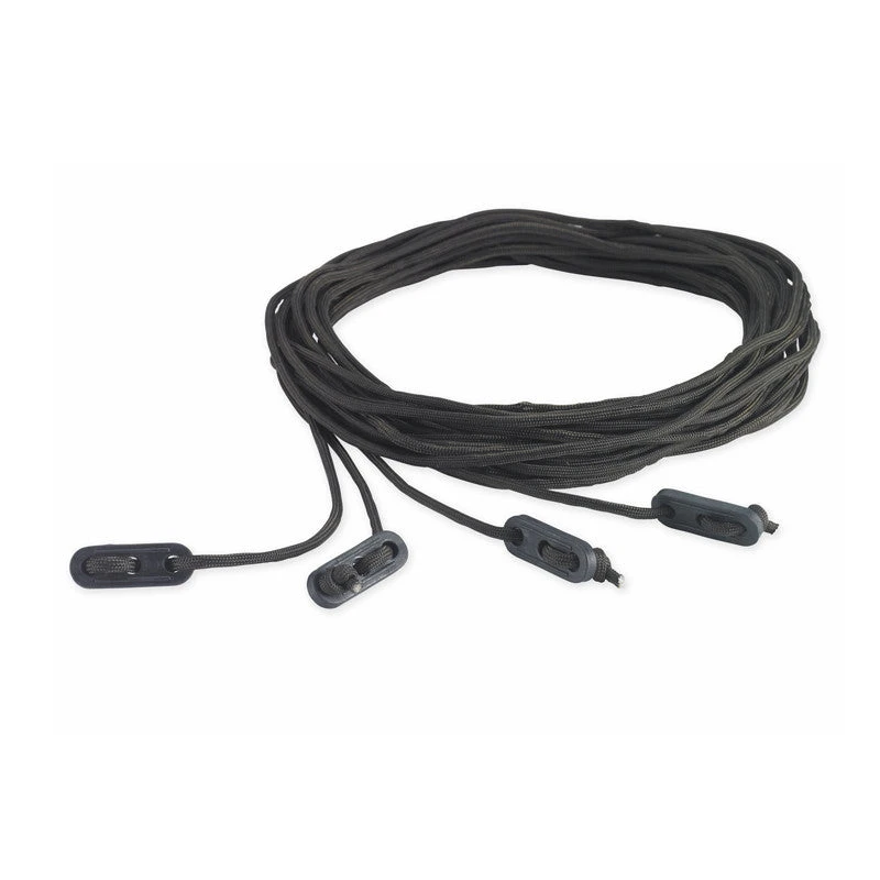 Suspension Attachment System: Made out of 550½ paracord with knots spaced to allow for various attachment points and distances from the tree or post to the hammock. No more fumbling and tying knots, nor finding the perfectly spaced tree as the Suspension Attachment System allows for various lengths to attach the hammock as required. Simply wrap the Suspension Attachment System around the desired tree then run the knotted end through the loop end and attach the carabiner on the hammock to the knotted section to achieve the desired length and height when setting up.