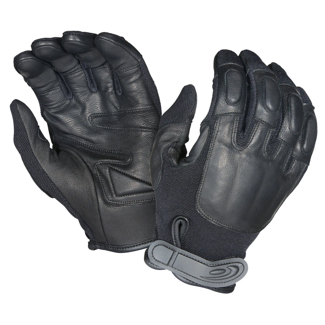 The Defender™ II glove features a double-layered goatskin palm for extreme durability and abrasion resistance. Four ounces of steel shot is sewn into each knuckle area. It features the Hatch® Ergo-Cut™ design.