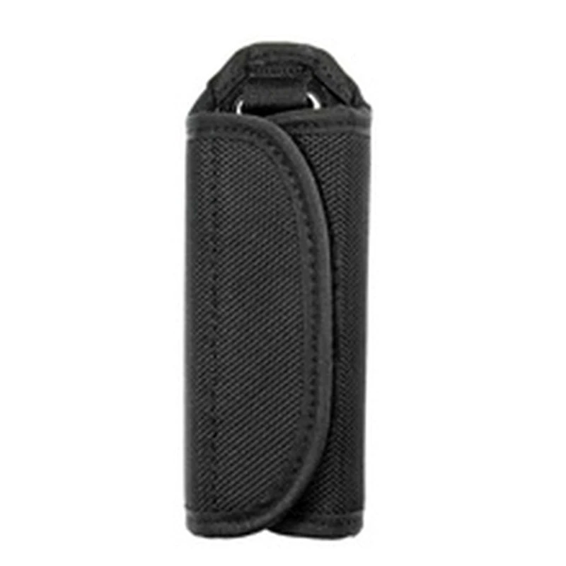 Ballistic Silent Key Holder with Clip is constructed with 1680 denier ballistic to provide lightweight comfort and durability. The metal clip allows one handed access to key ring. Wrap around design keeps keys firmly and quietly in place.