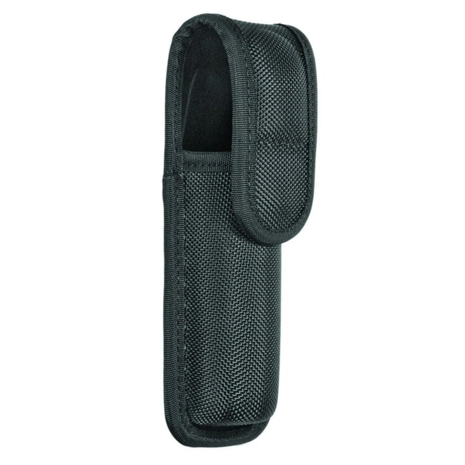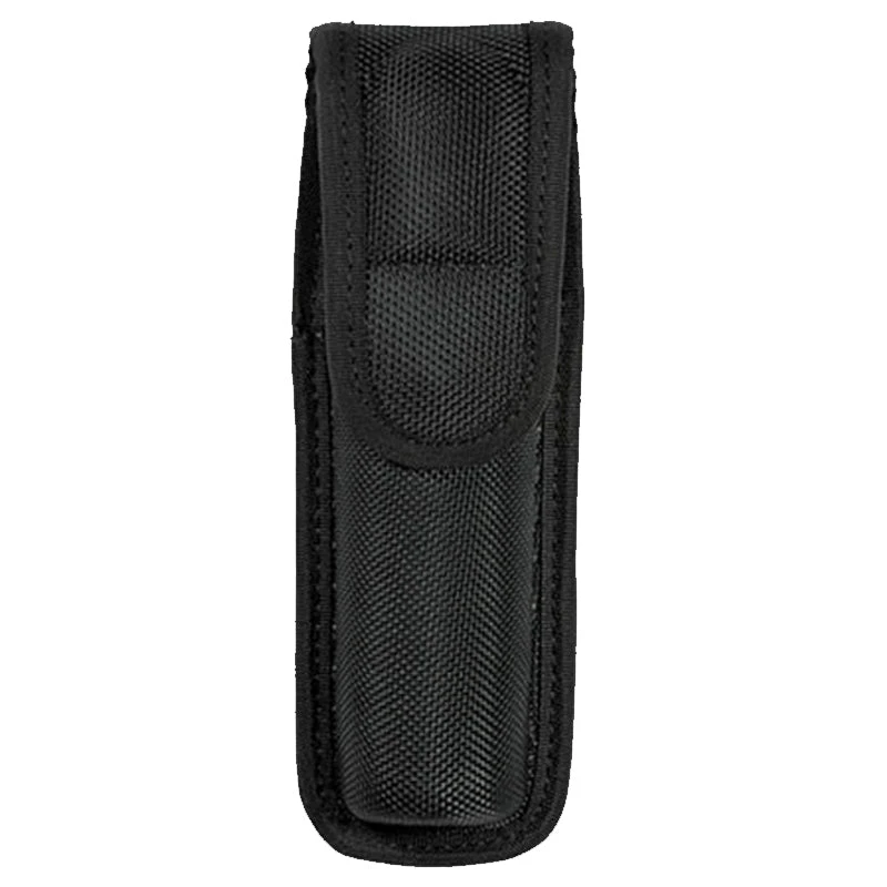 Ballistic Closed Flashlight Case is constructed with 1680 denier ballistic to provide lightweight comfort and durability. Molded design for secure equipment placement and quiet easy in/out access. Hidden snap design offers a professional look and reinforced USA DOT® snaps provide reliable snap/re-snap functionality.