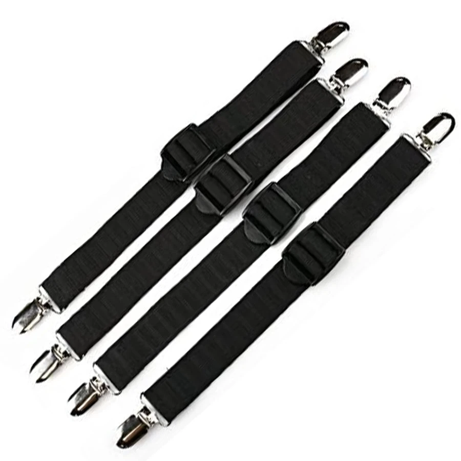 Keep your shirts neatly tucked with these single strap shirt stays from Hero’s Pride. They attach to your shirt and sock and are adjustable for a custom fit. All four straps should be used to maintain a professional, dry-cleaned appearance. This is a straight shirt stay and features the Claw Clamp. Packaged four per box.