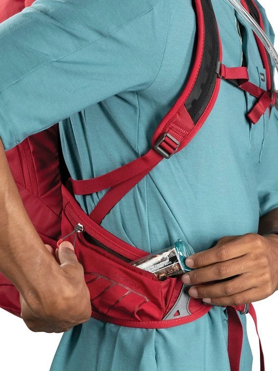 Osprey Hydraulics® LT 2.5L reservoir keeps you hydrated all day long and stores in a dedicated hydration compartment with direct-zip access and sternum strap magnetic bite valve.