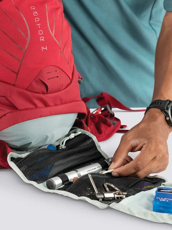 - Stretch mesh zippered hipbelt pockets
