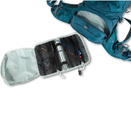Osprey Hydraulics® LT 2.5L reservoir keeps you hydrated all day long and stores in a dedicated hydration compartment with direct-zip access and sternum strap magnetic bite valve.