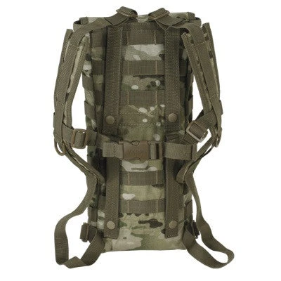 The Voodoo Tactical Hydration Carrier with Removable Harness holds most sizes of bladders. Right or left side hose exit for included bladder. Metal grommet drain holes. Wear as a hydration pack or remove the harness and stow it in its own pouch. Attach carrier to your pack or vest. Back of carrier will hold any standard MOLLE pouch.