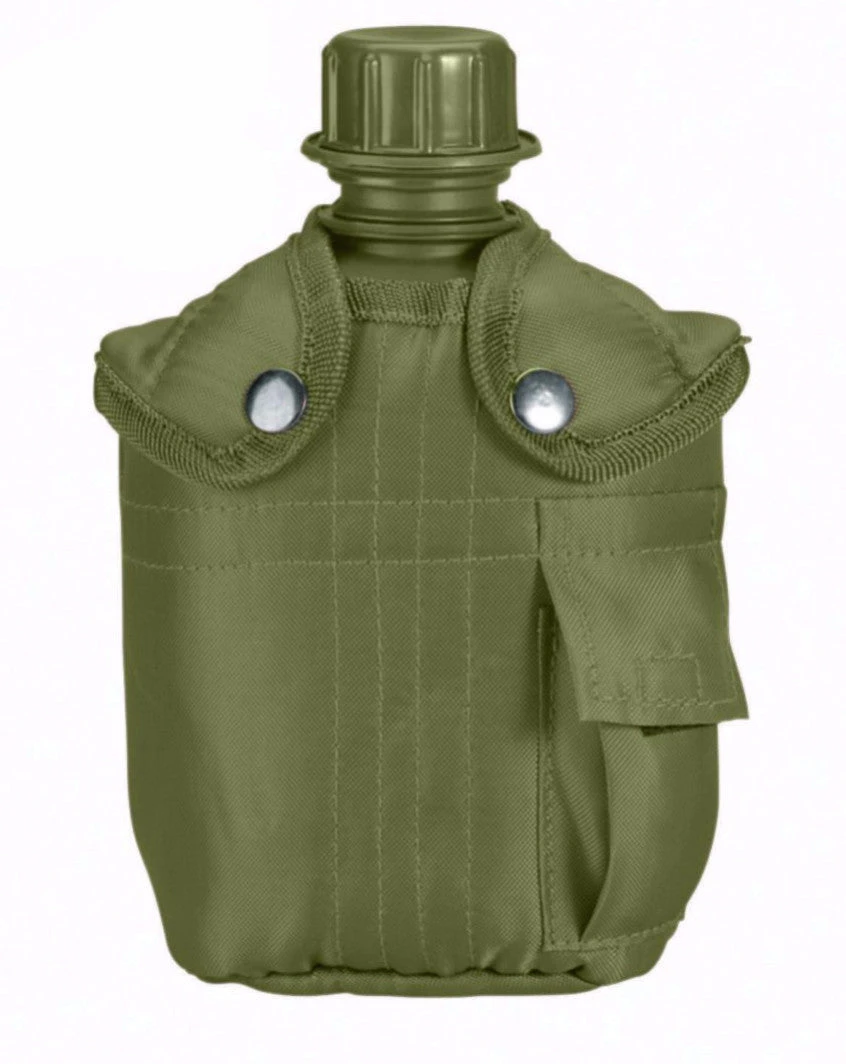 Rothco’s G.I. Type Plastic Military Canteen With Cover Includes Current Type Military Canteen and a cover with a belt clip. The BPA free plastic canteen holds up to 1 QT.
