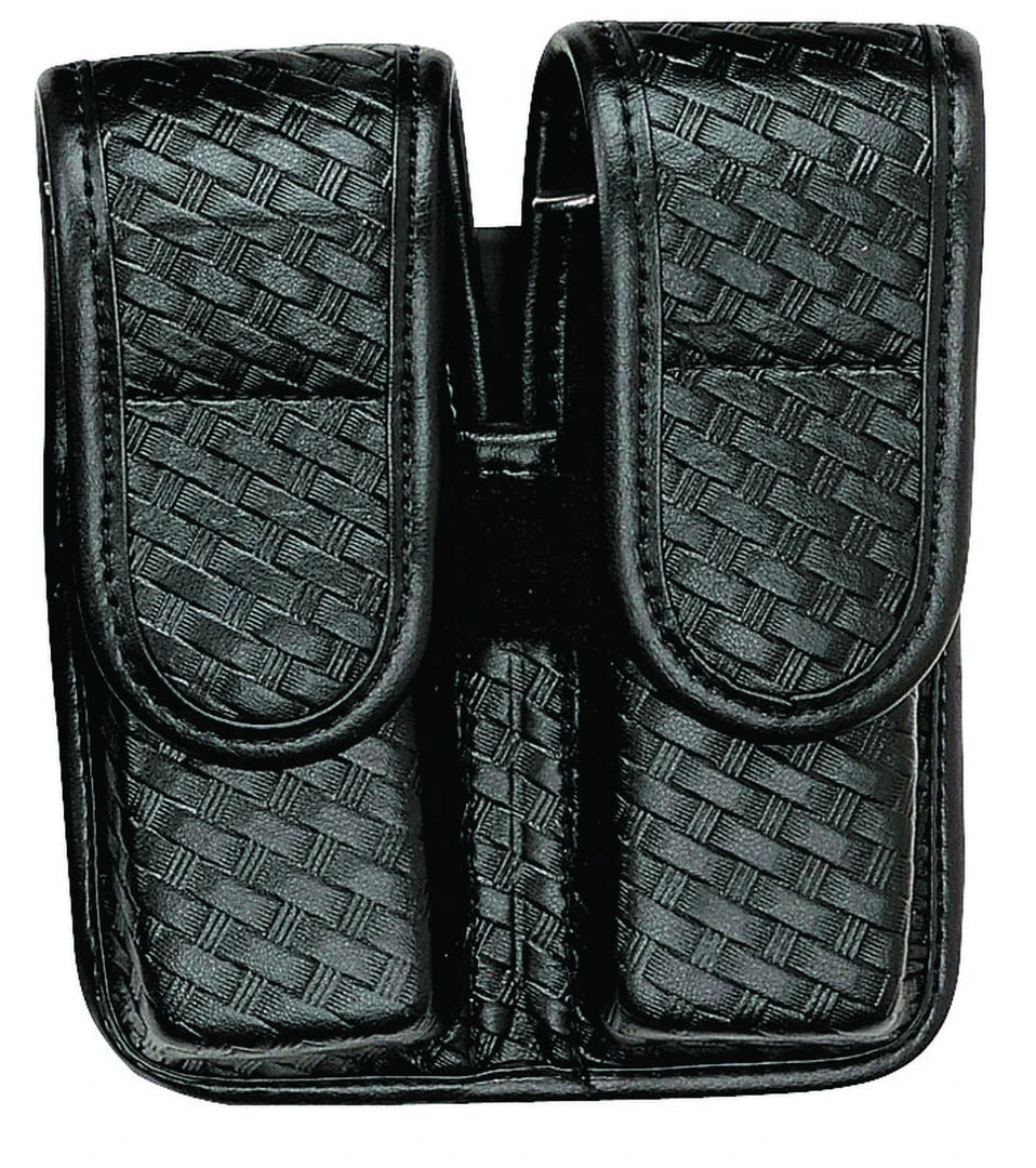 The Model 7902 AccuMold® Elite™ Double Magazine Pouch is molded and contoured trilaminate construction with a leather-like finish. Features vertical or horizontal carry which offers versatility of use. Available in 2.25 in. (58 mm) belt widths.