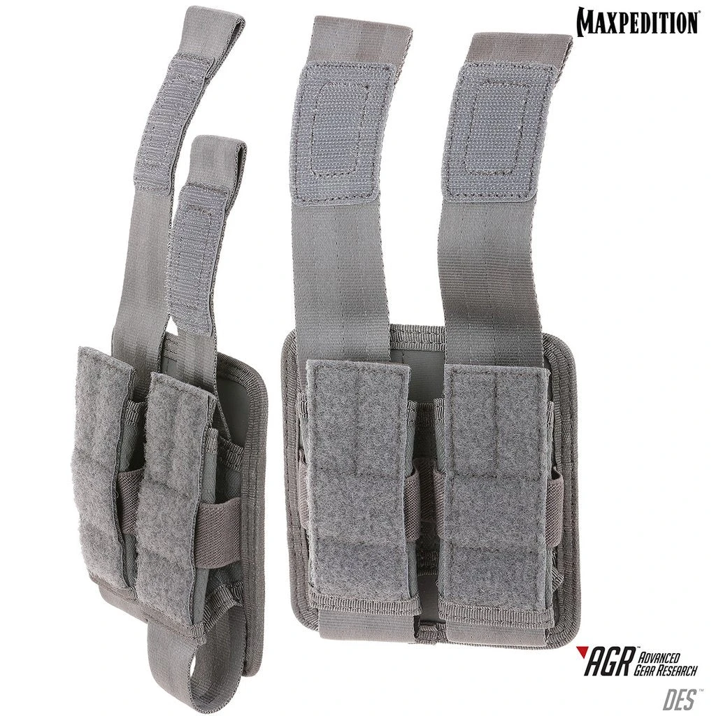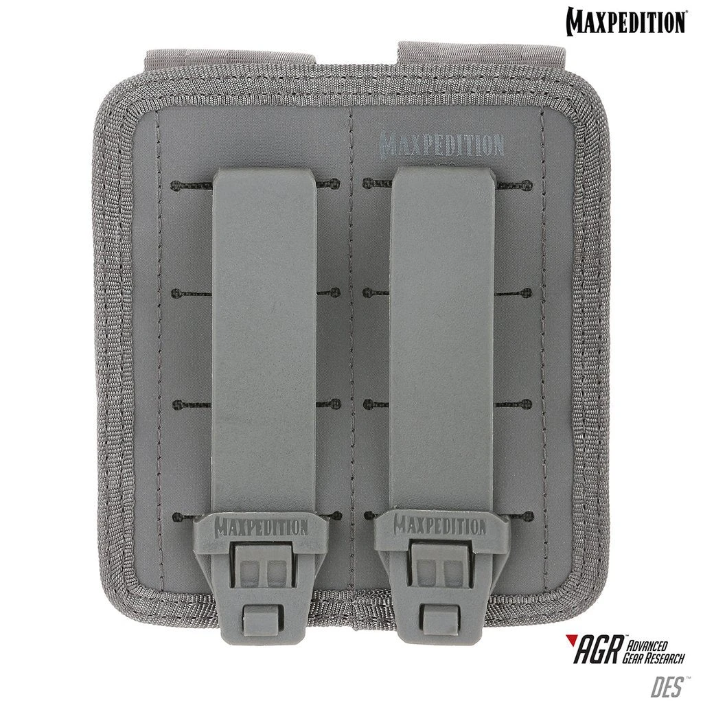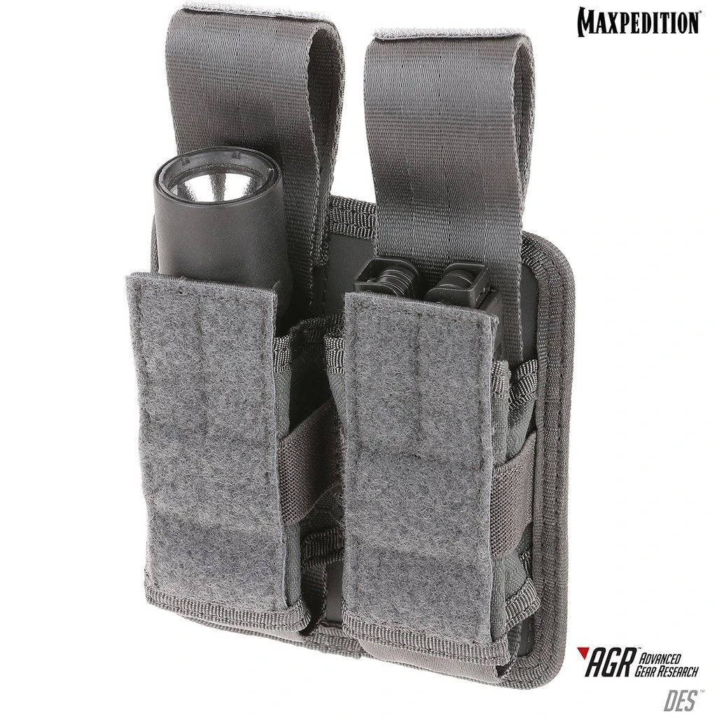 The DES Double Sheath Pouch has a unique design that allows you to pull out the contents with one tug of the webbing tab. Side elastic retention keeps objects secure. Perfect for handgun magazines, flashlights, and/or tools.