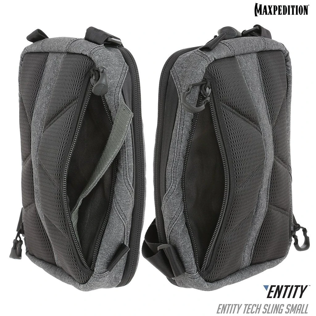 The smaller of 2 available sizes, this CCW-enabled tech sling bag has a strap that may be positioned by the user for right or left side carry, and may also be easily changed from a sling bag to a shoulder bag. A padded main compartment with lockable zipper sliders contains a padded 11″ laptop/tablet compartment accessible from either side. Additionally, there is also 2-way access to a fully loop-lined rear CCW compartment. A Security Lockout Strip is included for safety.
